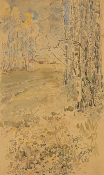 Prairie et bosquet, huile sur papier, 22x18 cm. Provenance: Fami...