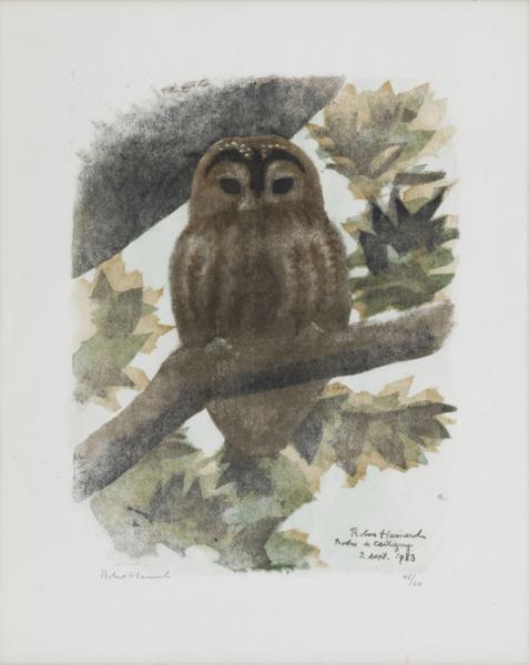 Hibou, Roches de Cartigny, bois gravé, signé et numéroté 46/64,...