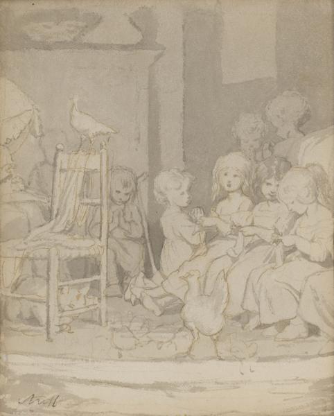 Etude d'un groupe d'enfants, lavis sur papier, monogrammé, 20x17...