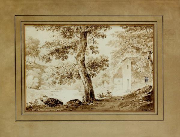 Maisonnette dans la forêt, lavis sur papier, signé L.Bauvier, 20...