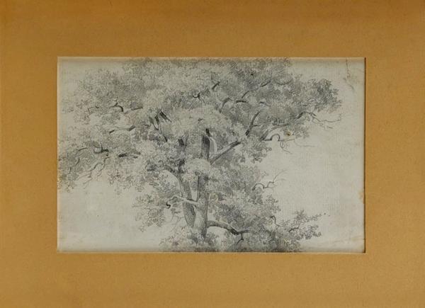 Etude de jeune femme assise devant un tronc, mine de plomb sur p...