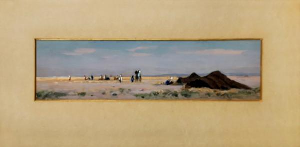 Pêcheurs, gouache et fusain sur papier, signé, 63x46 cm