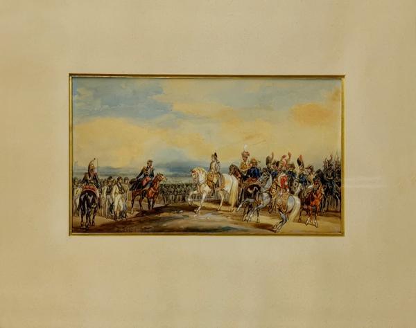 Chasseurs à cheval et dragons, deux aquarelles sur papier, signé...