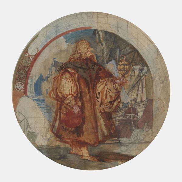 Homme de la Renaissance, gouache et encre sur papier, D 31 cm