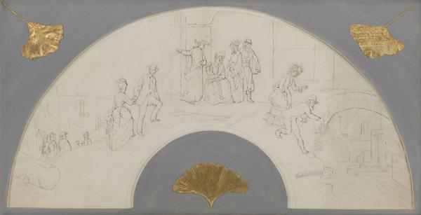 Etude d'éventail à décor de personnages, encre sur papier, cache...