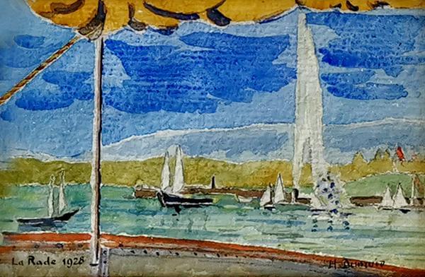 La rade, aqurelle sur papier, signée et datée 1928, 12x17 cm
