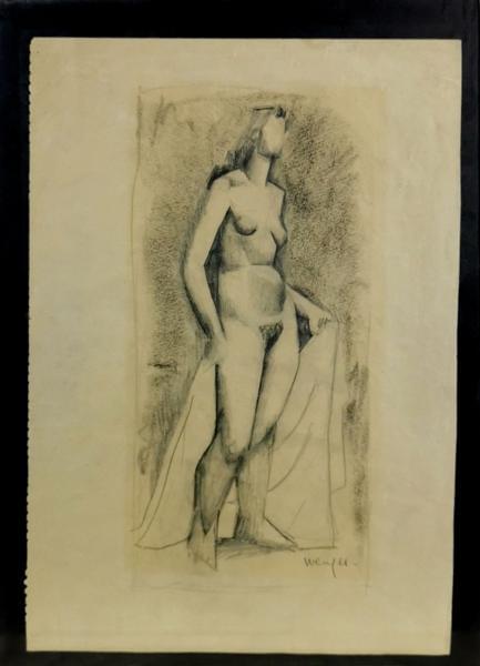 Femme nue debout, mine de plomb sur papier, signée Wenger, 26x12...