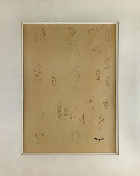 Ensemble d'études de personnages, mine de plomb sur papier, tamp...