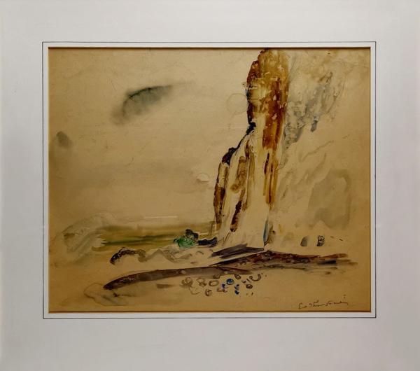 Berger près d'une cascade, aquarelle et gouache, 16x20 cm