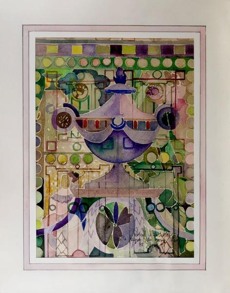 Portail, gouache sur papier, signée et datée 52, 80x60
