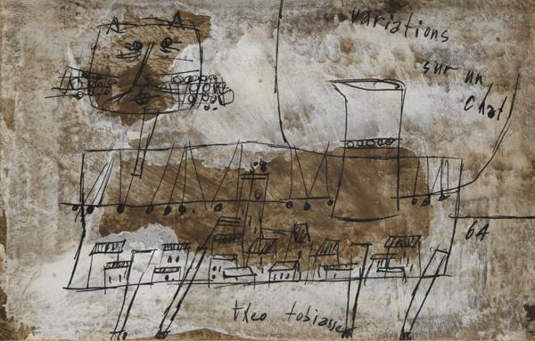 Variations sur un chat, gouache et encre sur papier, titrée, sig...