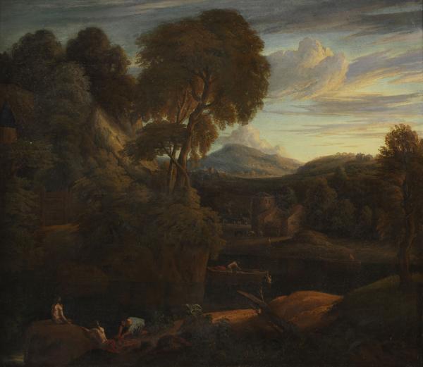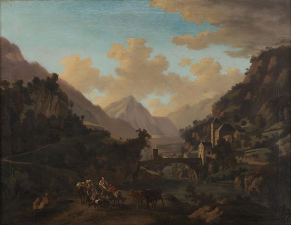 Paysage idéalisé de Saint Maurice et de la vallée du Rhône, huil...