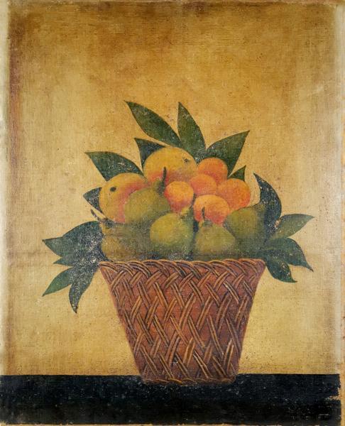 Corbeille de fruits, paire d'huiles sur toile, 37x54 cm