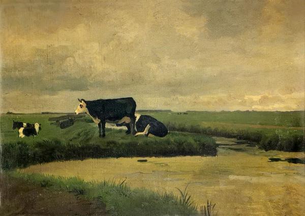 Vaches dans le pré, huile sur toile, trace de signature, 25x35 c...