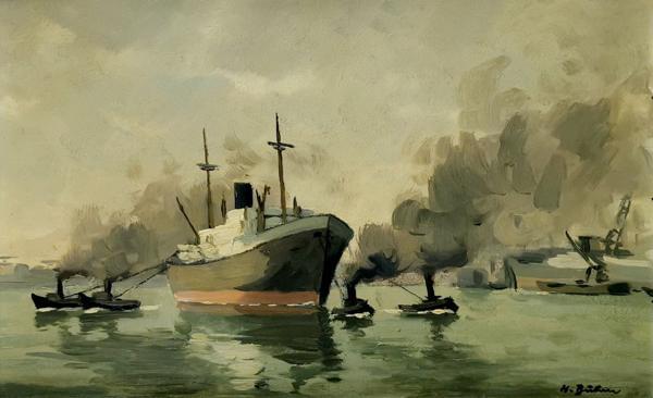 Bol d'Or Mirabaud, Genève, huile sur toile, signée et datée 94,...