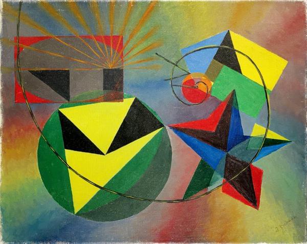 Formes géométriques, huile sur toile, signée et datée 91, 38x46...