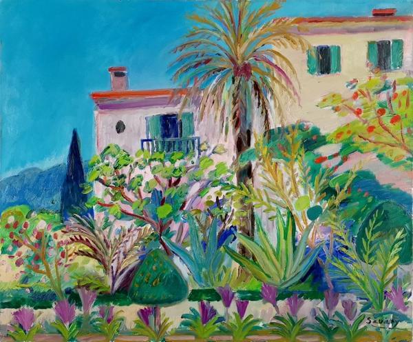 Dans le jardin, huile sur toile, signée, 65x54 cm
