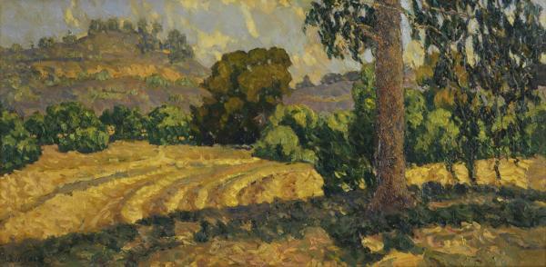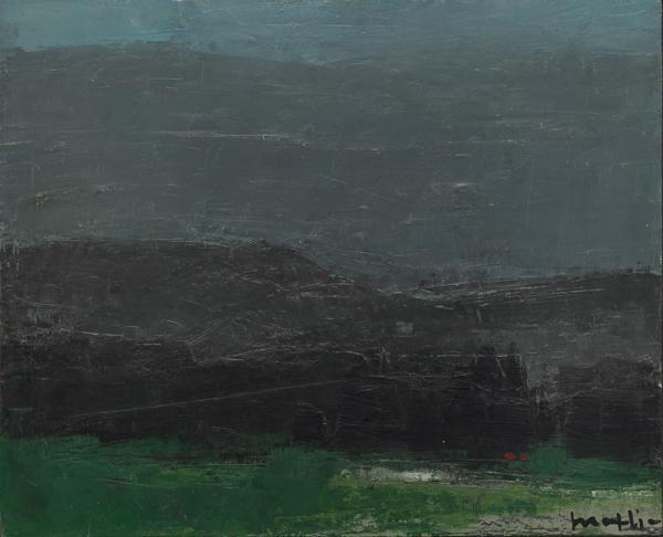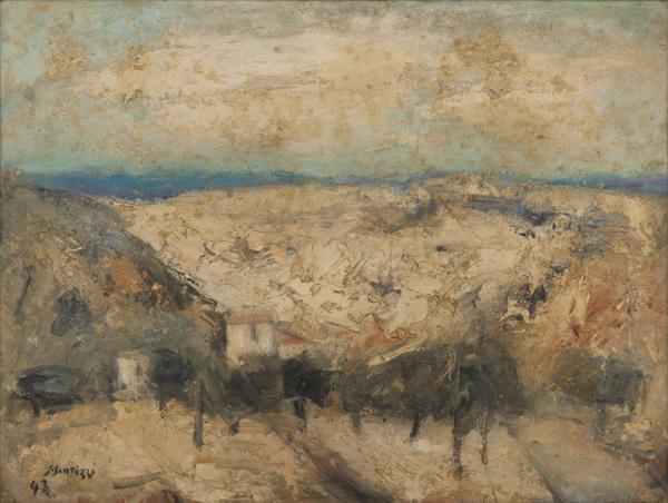 Paysage, huile sur pavatex, 34,5x42,5 cm