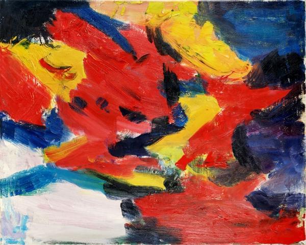 Abstraction, huile sur toile, signée, dédicacée au dos, 25x33 cm...