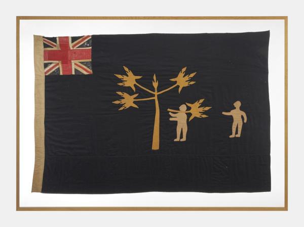 Allégorie à l'arbre, drapeau à décor de deux hommes et un arbre...