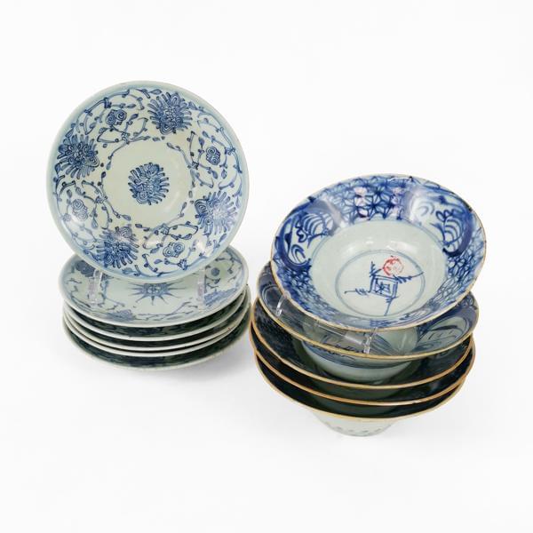 4726. Suite de six assiettes et cinq bols, Asie du Sud, fin XIXe s
