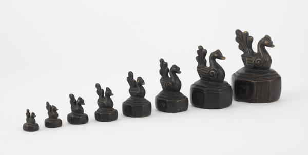 4759. Suite de huit poids en forme d'oiseaux, Birmanie XIXe s
