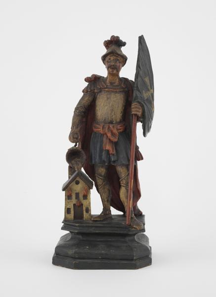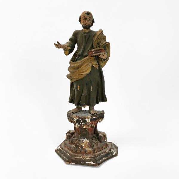 Bois sculpté et peint, yeux en verre, H 20 cm