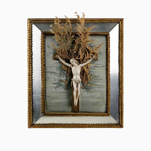 5003. Médaillon figurant le Christ en croix, Saint Jean et la Vierge