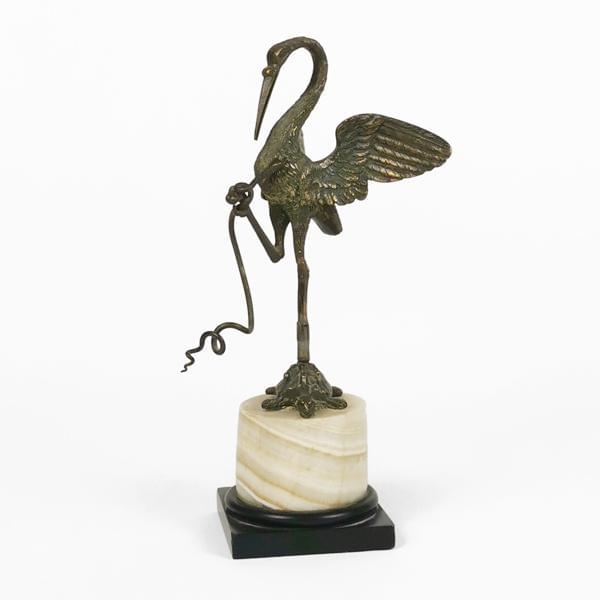 Héron tenant un serpent, bronze, H 17 cm sans le socle