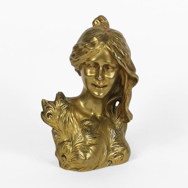 Buste de femme, bronze doré, cachet du fondeur Louchet, H 15 cm