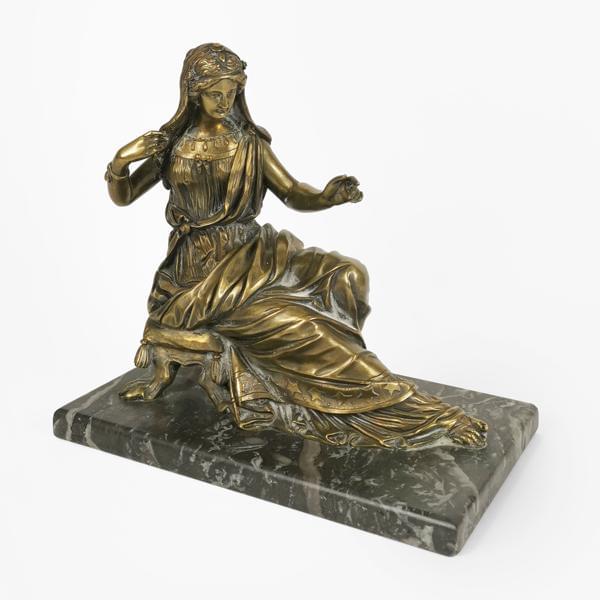 Sapho à la colonne, bronze à patine brune nuancée, socle en marb...
