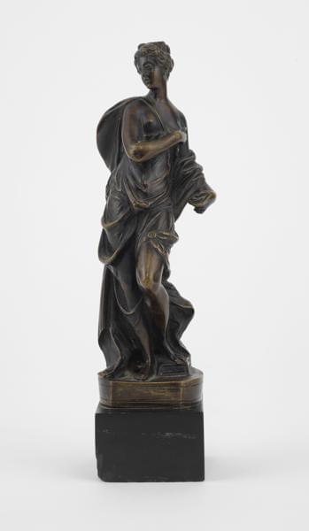 Femme drapée à l'antique, bronze, traces de patine noire, H 17 c...