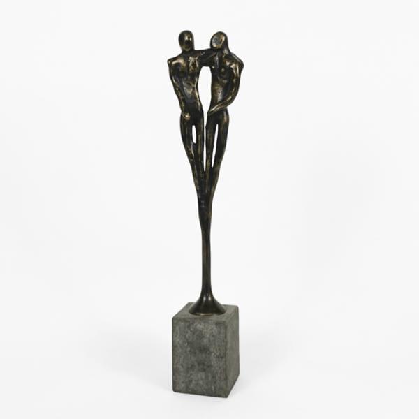Couple, bronze à patine foncée, signature illisible, H 30 cm
