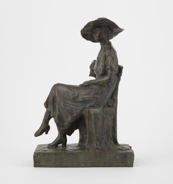 Elégante au chapeau assise, bronze à patine brune, signé, numéro...