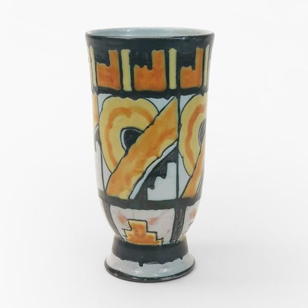 Faïence émaillée polychrome à motifs abstraits, H 18 cm