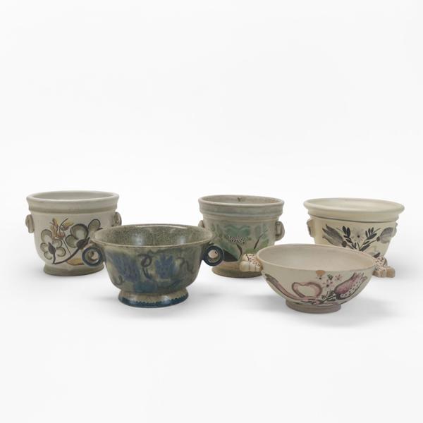 5210. Trois cache-pots et 2 coupes à décor de fleurs