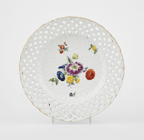 5248. Assiette à décor de fleurs et marli ajouré en treillis
