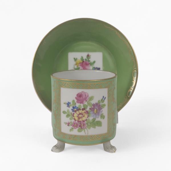 5250. Tasse vert pistache à décor de fleurs en réserve