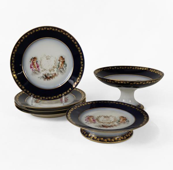 5256. Ensemble de 4 assiettes et 2 coupes à pieds, Château des Tuileri...