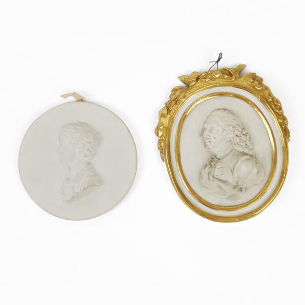 Biscuit doré, H 10 cm. On joint un deuxième médaillon à décor d'...