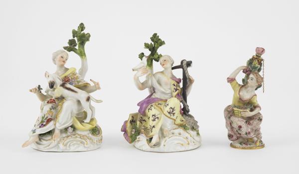Meissen, XVIIIe s, porcelaine, l'une formant flacon à senteurs,...