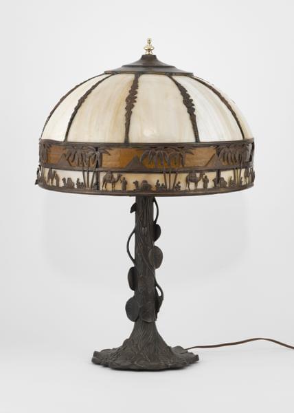Métal repoussé à motif de nénuphars, abat-jour en vitrail à déco...