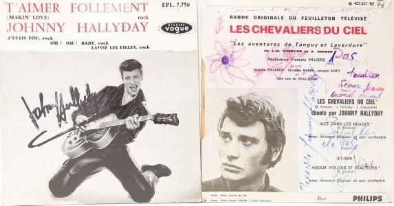 4112. Deux disques 45 tours signées par Johnny Hallyday