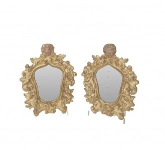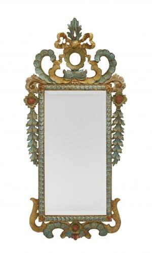 Bois sculpté et peint polychrome, glace biseautée, 90x43 cm