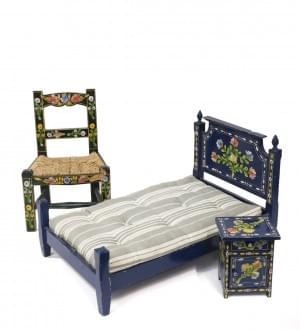 Bois peint à décor de fleurs, L 56 cm pour le lit
