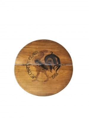 Bois xylographie à décor d'un coq et de la phrase "Je chante cla...