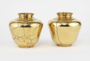 Verre or craquelé, H 18 et 19 cm
