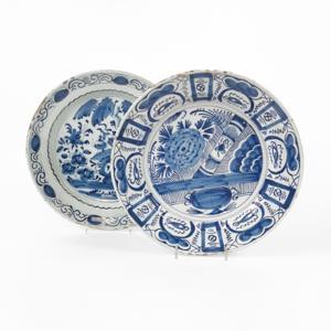 4302. Plat chantourné et assiette, Delft et France, XVIIIe s