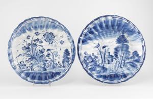 4305. Deux plats ronds à godrons, Italie, XVIIIe s