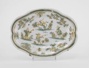 4308. Plat chantourné à décor de grottesques, Moustiers, XVIIIe s